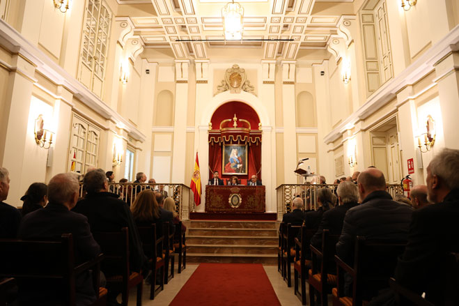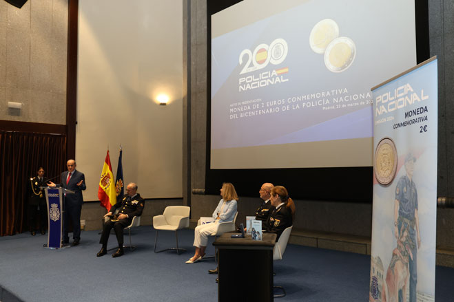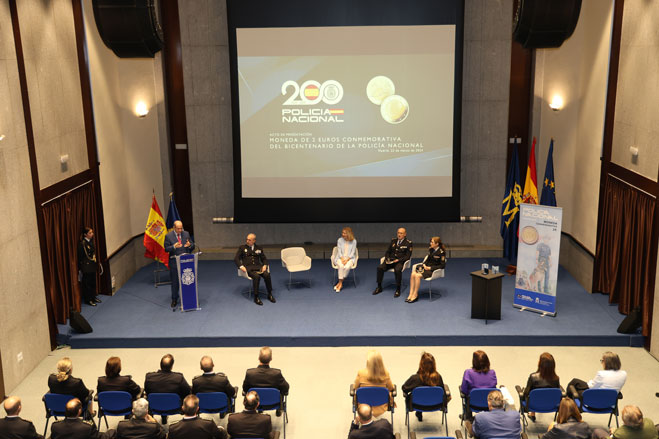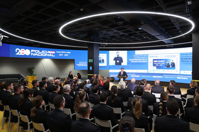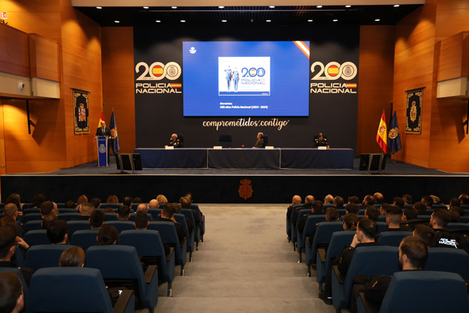 Salón de actos durante la presentación del sello conmemorativo del bicentenario de la Policía Española.