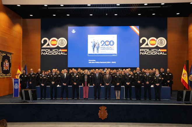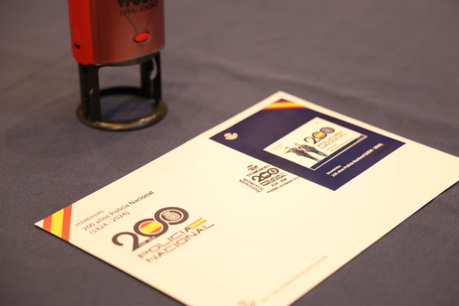 Modelo del sello conmemorativo del bicentenario de la Policía Española.