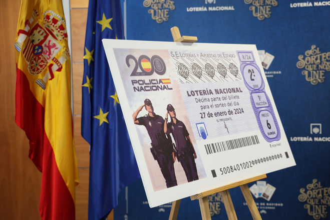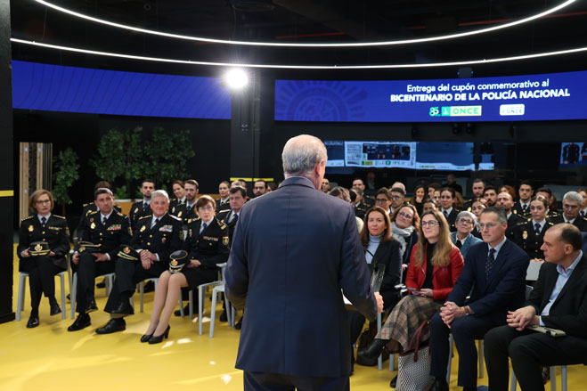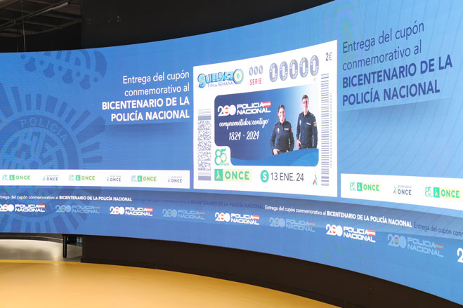 Pantalla con la imagen del cupón ONCE conmemorativo del bicentenario de la Policía Española.