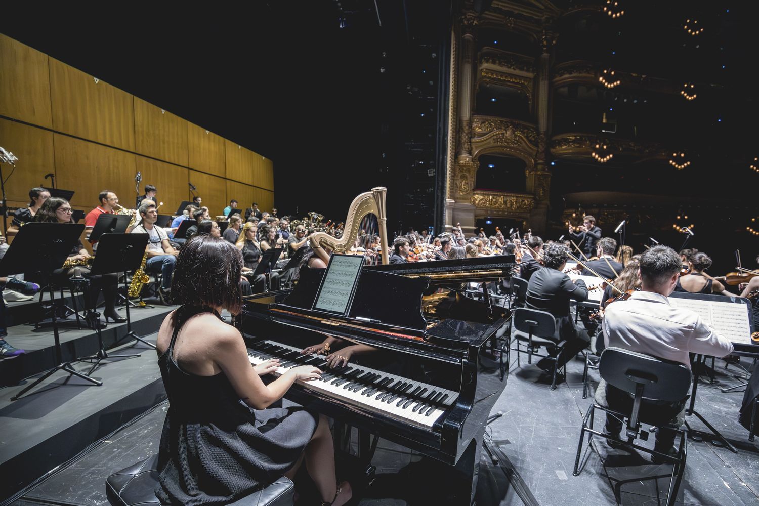 Imagen de la orquesta, con la pianista en primer plano