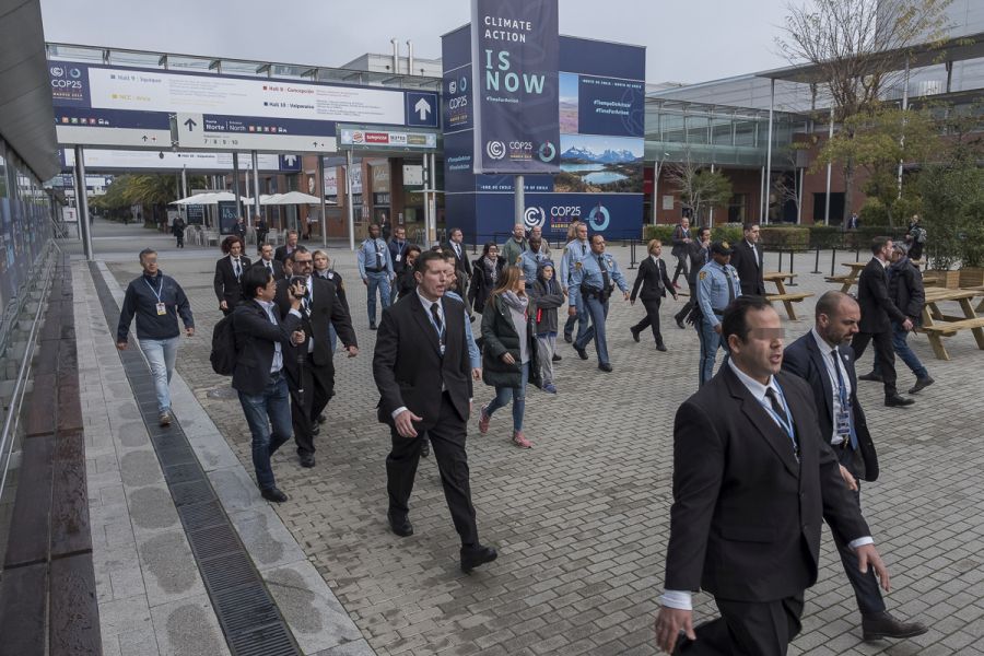 Escolta realizada a Greta Thunberg en la visita que realizó en la Conferencia de las Naciones Unidas sobre el Cambio Climático.