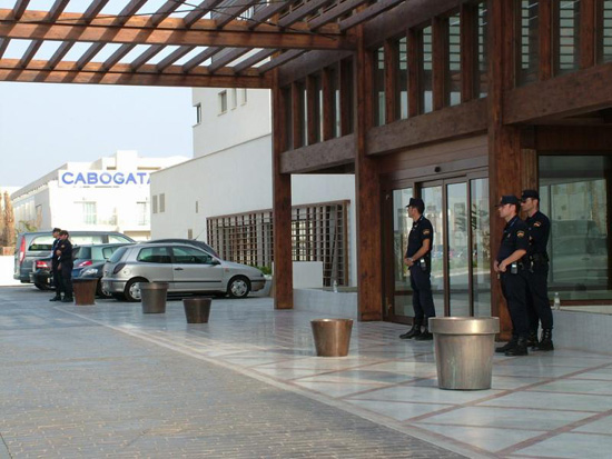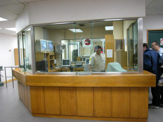 Control de seguridad de un edificio vigilado por un vigilante de seguridad Privada.