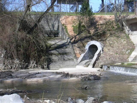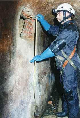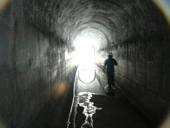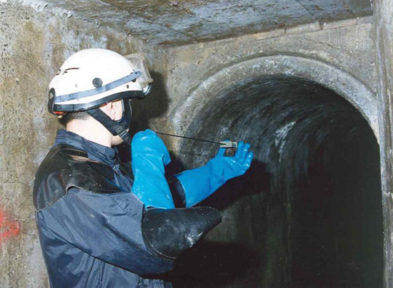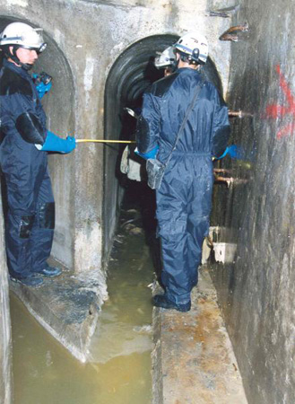Policía Nacional de la Unidad de Subsuelo y Protección Ambienta inspecciona la rotura de la pared del alcantarillado.