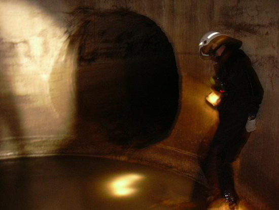 Policía Nacional de la Unidad de Subsuelo y Protección Ambiental, realiza la inspección del alcantarillado.