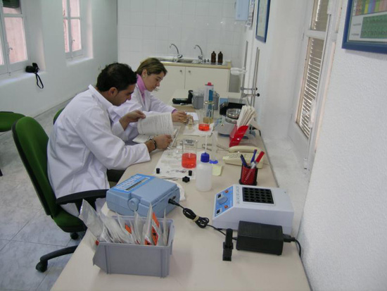 Dos personas trabajando en un laboratorio donde estudiar las muestras.