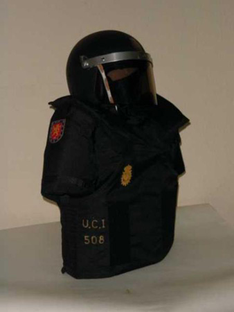 Imagen del material de protección del personal UIP. Se observa el chaleco anti trauma y el casco. Ambos material de dotación individual.