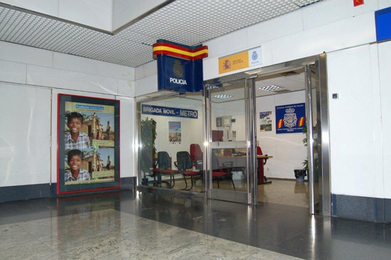 Entrada a la Comisaría de Policía Nacional que se encuentra en el interior de la estación de metro de Nuevos Ministerios (Madrid).